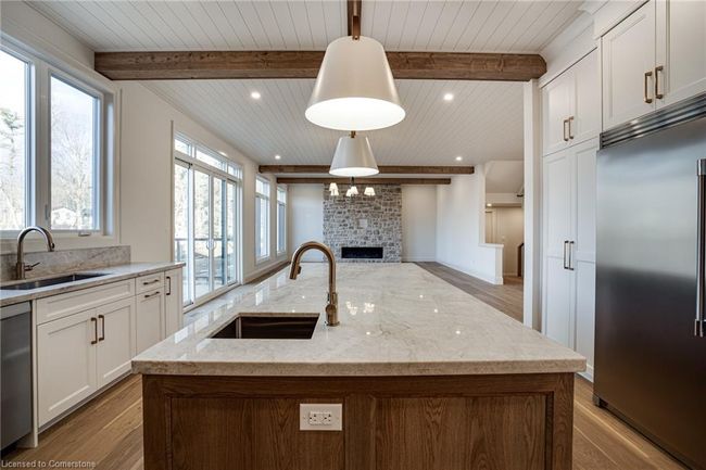PRICED TO SELL!! Everything you want in a forever home—built with standout style and craftsmanship by Fortino Bros Inc. Tucked into a quiet private enclave, this modern farmhouse showhome is where luxury meets outstanding value. A bold exterior of white brick, barnboard, stucco, and black-framed windows creates unforgettable curb appeal. Inside, discover a family-focused layout with soaring ceilings, shiplap and beam accents, wide trim, oversized doors, and a custom oak staircase. The chef’s kitchen is a true centrepiece, with two-tone cabinetry, Taj Mahal quartzite counters, premium appliances, and a sculptural range hood. Enjoy seamless indoor-outdoor living with a 29'x15' raised composite deck overlooking green space - accessible by double sliding glass doors from the family room - a perfect space for relaxing or entertaining. A stone fireplace adds warmth and character to the open living area. Upstairs, four spacious bedrooms offer walk-in closets and access to three stunning baths. The primary suite is a luxurious retreat with a spa-like ensuite, freestanding tub, oversized glass shower, custom vanity, and built-in cabinetry. Everyday ease continues with a second-floor laundry room and thoughtful details throughout. Move-in ready, built by a Tarion-registered builder, and HST is included. Superb finishes, space for real living, and peace of mind—all in one exceptional home. Ask for the full feature list and book your private tour today. Driveway and flowerbeds virtually staged, not included in price. Some interior photos have been virtually staged.Show Description MLS® Number40777157