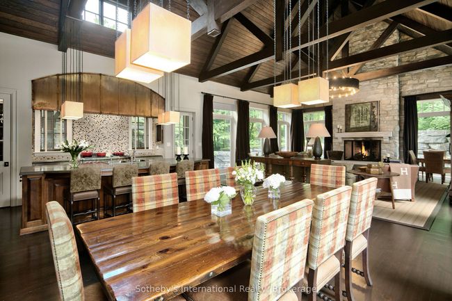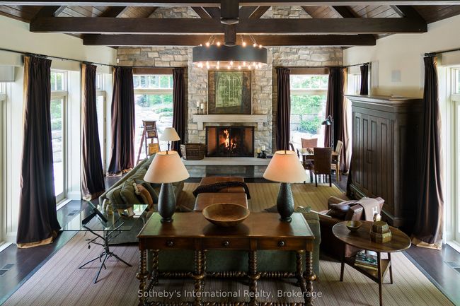 Extraordinary Luxury Estate perfectly nestled in the mountainside of Alpine ski club on two private, picturesque lots offering rare ski in ski out privileges. No detail has been overlooked and exceptional craftsmanship is evident throughout this seven bedroom, eight bathroom home, masterfully designed by Brian Gluckstein. This exquisite home offers 6824 square feet of luxury living and features a remarkable great room with soaring 23 foot cathedral ceilings with exposed hemlock beams, floor to ceiling stone fireplace, expansive windows, custom gourmet kitchen with a stunning copper range canopy, an impressive, grand gear room with heated stone floors and a beautiful primary suite with gas fireplace, ensuite with steam shower and walk out to a private heated patio. Four additional bedrooms all with ensuites complete the well appointed second floor. The lower level features a massive recreation room with heated floors, gas fireplace, kitchenette and two additional bedrooms with ensuites. Surrounded by lush mature trees and custom landscape this private ski-in ski-out property boasts numerous heated patios, gas fireplace, outdoor kitchen, hot tub and a large multi sport turf field designed to enjoy touch tennis, soccer and golf. A year round entertainers dream and truly a one of a kind gem.Show Description