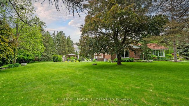 Discover a rare opportunity to own this stunning 5-bedroom, 3-bathroom bungalow on a private 2-acre lot in King. Designed for comfort, elegance, and functionality, this home is ideal for families looking for space and premium amenities. Step outside to the beautifully landscaped gardens, complete with a peaceful koi fish pond, mature trees, and a stunning waterfall. An in-ground sprinkler system keeps the gardens lush and vibrant. Enjoy an evening outdoors under the spacious gazebo with a gas fireplace or relax in the hot tub. Inside, the home features a separate two-bedroom apartment complete with a full kitchen and dining area making it perfect for multi-generational families. The main kitchen and dining area overlook the stunning waterfall, which creates a serene setting for meals or entertaining. Be sure to check out the spectacular great room with floor-to-ceiling windows, a large stone fireplace feature, and a walkout to the backyard oasis. Practicality meets luxury with remote gated access, 3-phase electrical service, and a heated garage, large enough to park 6 vehicles or as a spacious work area ideal for hobbyists, contractors, or those needing extra storage. This extraordinary home blends rural beauty with modern conveniences, offering a lifestyle like no other. Located in the township of King, this place is a dream come true for anyone seeking a delightful escape. Surrounded by nature yet just a short drive away, you will find yourself surrounded by the vibrant energy of shopping, restaurants, and minutes from the 400 Highway. UPGRADES: Patio (2022-2024), Sprinklers (2022), Furnace (2022/2010)Show Description
